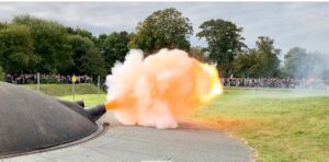 Kl. 12.00 affyres Garderhøjfortets største kanoner. Inden affyring tømmes fortets udstillinger og der laves en fortælling om fortets kanoner inden de skydes af.